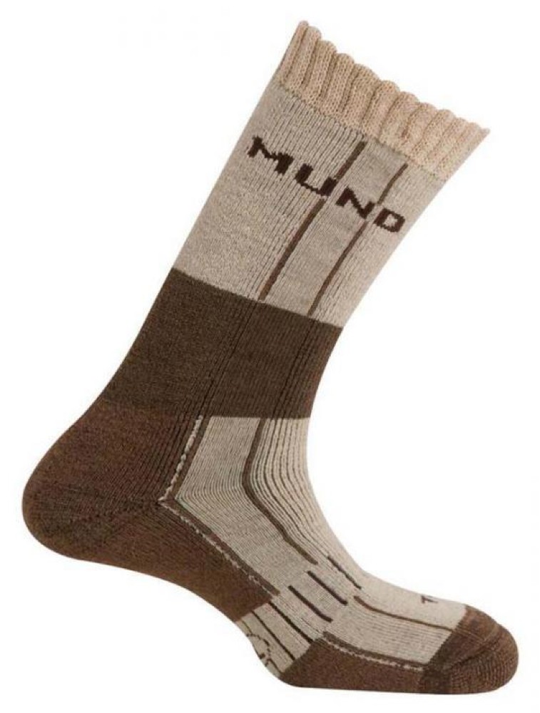 Brown thermal trekking sock made with Merino Wool and THERMOLITE fiber. The mix of both fibers gives the garment a high thermic quality and thermic compensation abilities.